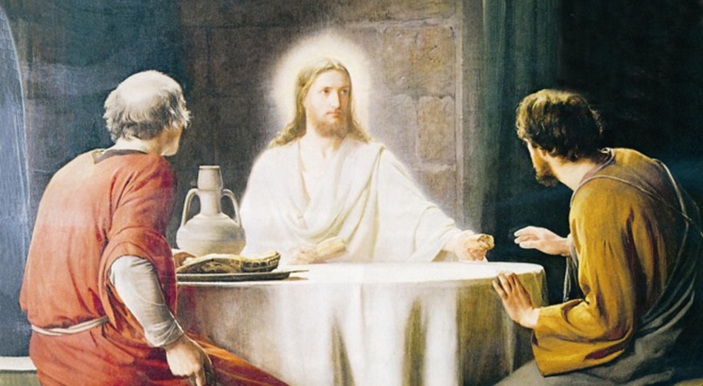 “Gdy Jezus zajął z nimi miejsce u stołu, wziął chleb, odmówił błogosławieństwo, połamał go i dawał im. Wtedy otworzyły się im oczy i poznali Go, lecz On zniknął im z oczu.” Ewangelia Łukasza 24