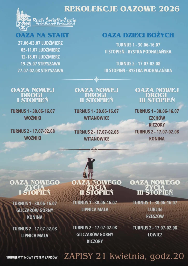 ♥ Zapraszamy dzieci na wyjazd rekolekcyjny „Oaza na start”. Więcej informacji na plakacie i na stronie parafialnej oraz na stronie www.krakow.oaza.pl