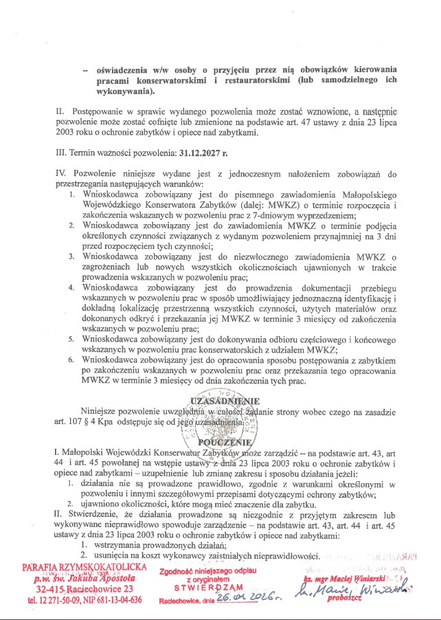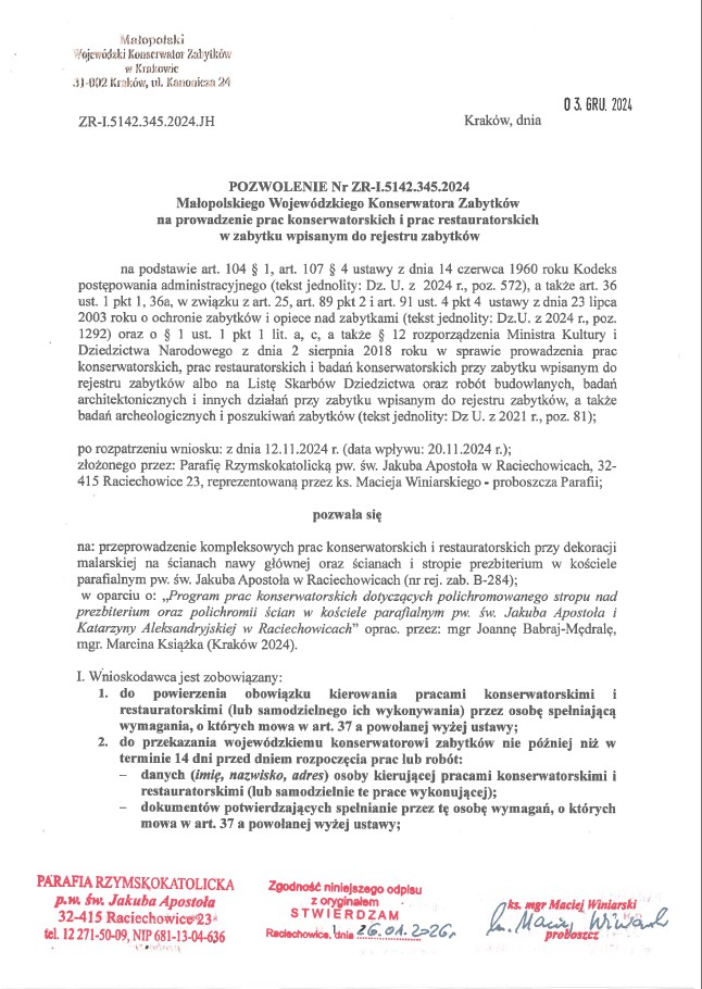 Informacje o renowacjach w kościele w Raciechowicach i Gruszowie